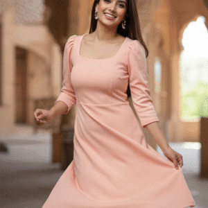 Elegant Peach Plain Long Dress for Women