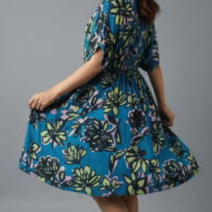 Elegant Teal Floral Printed Dress for Women