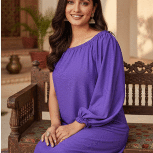 Elegant Purple Plain Short Dress for Women