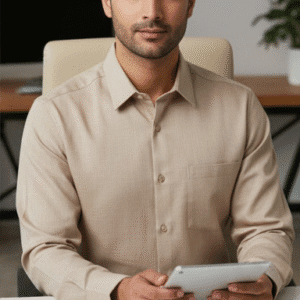 Elegant Beige Printed Half Sleeves Mens Shirt for Men