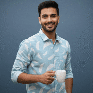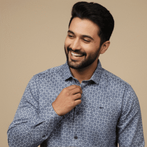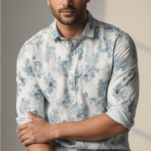 Classic Sky Blue Casual Full Sleeves Printed Shirt Mens Shirt for Men