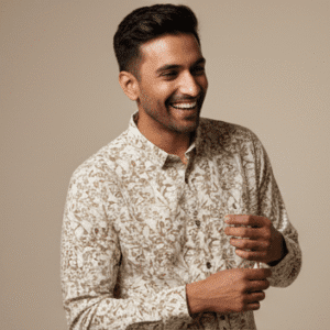 Trendy Beige Printed Full Sleeves Mens Shirt for Men