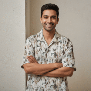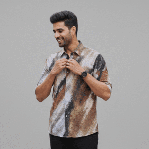 Premium Olive Green Printed Half Sleeves Shirt for Men