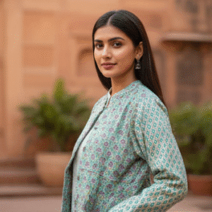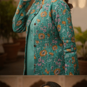 Elegant Green Full Sleeves Printed Jacket for Women