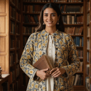 Elegant Blue Full Sleeves Printed Jacket for Women