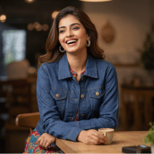 Elegant Blue Denim Jacket Jacket for Women