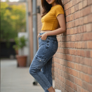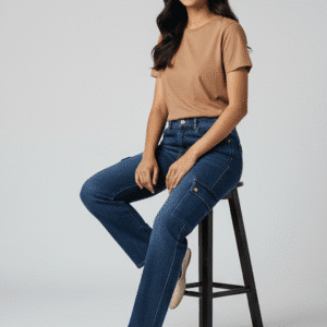Elegant Light Blue Striaight Fit Cargo for Women