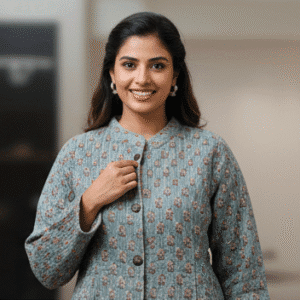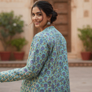 Elegant Light Blue Full Sleeves Printed Jacket for Women
