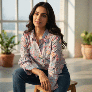 Elegant Grey Floral Printed Shirt for Women