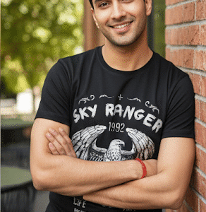 Modern Pista Front Printed Round Neck Half Sleeves for Men