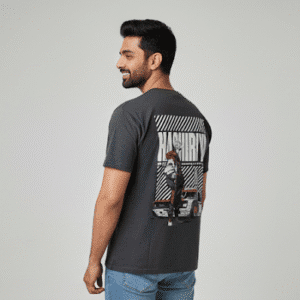 Modern Grey Back Print Round Neck Half Sleeves for Men