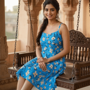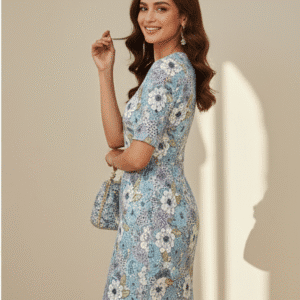 Elegant Blue Floral Printed Dress for Women