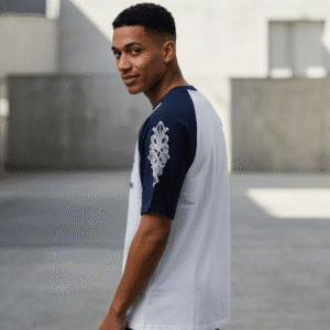 Classic Navy Blue Back Printed Mens T-Shirt for Men