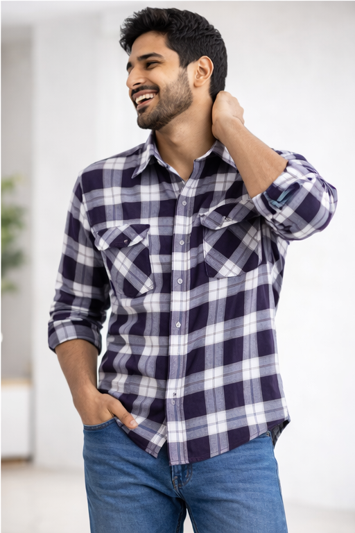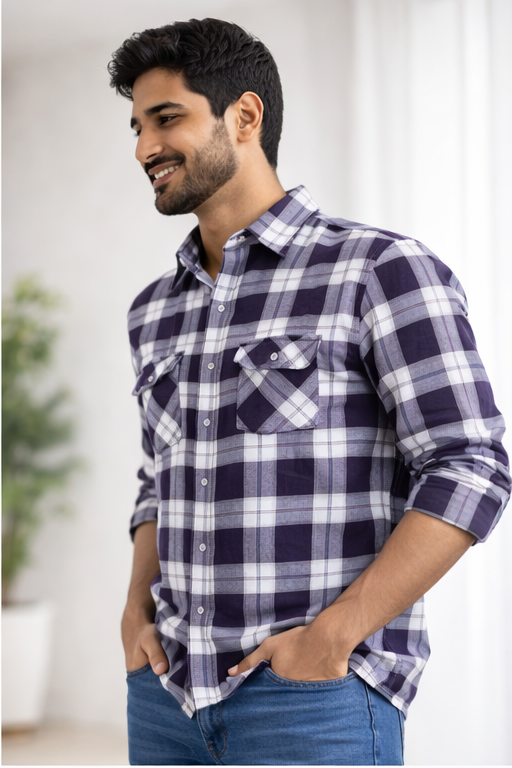The elegant brown checkered pattern delivers a refined and mature look, making it ideal for casual, formal, and semi-formal occasions. Featuring a regular fit and full sleeves, it pairs effortlessly with jeans, chinos, or formal trousers.