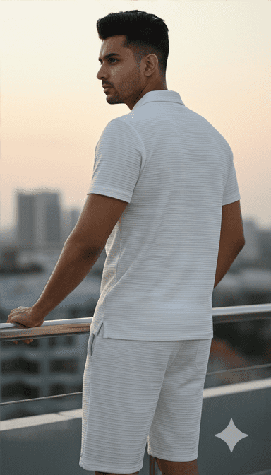 Classic White Plain Lining Mens Cord-Set for Men