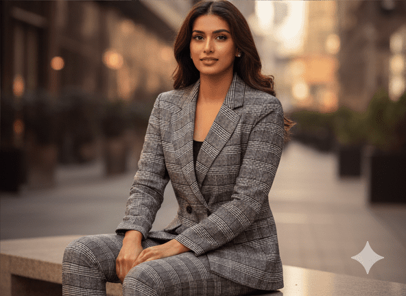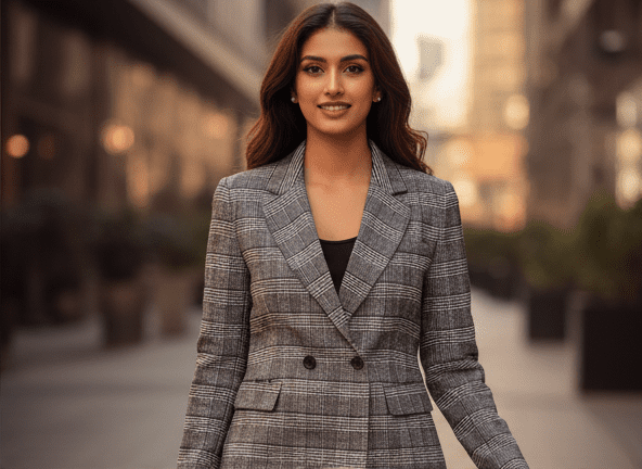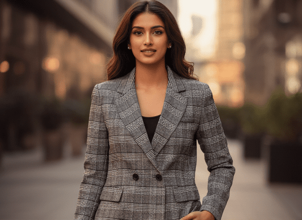 Experience timeless elegance with M&TElegant Black & White Casual Blazer for Women. Crafted with fine attention to detail, this outfit offers unmatched comfort and chic style. Designed for the modern woman, itideal for both casual and festive outings. Pair it with elegant accessories and step out in confidence.