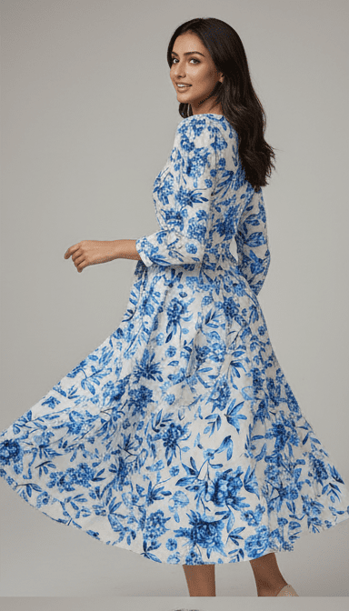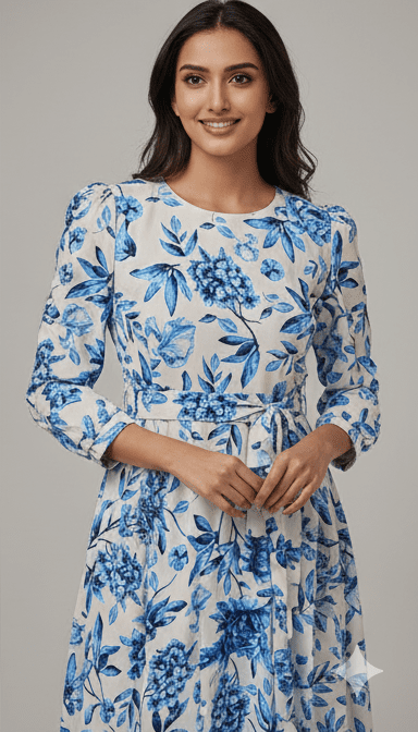 Experience timeless elegance with M&TElegant Blue Floral Print Long Dress for Women. Crafted with fine attention to detail, this dress offers unmatched comfort and chic style. Designed for the modern woman, itideal for both casual and festive outings. Pair it with elegant accessories and step out in confidence.