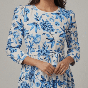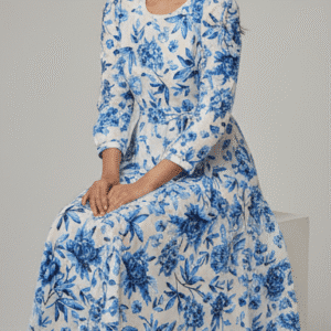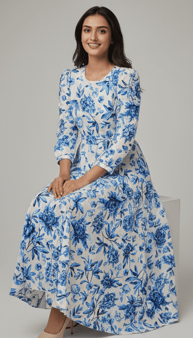 Be the first to review “Elegant Blue Floral Print Long Dress for Women”