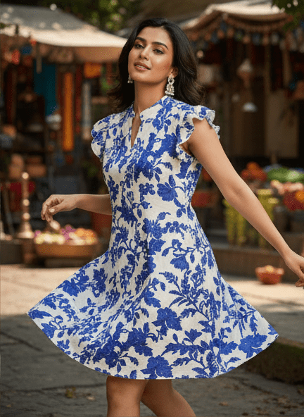 Experience timeless elegance with M&TElegant Blue Floral Printed Dress for Women. Crafted with fine attention to detail, this dress offers unmatched comfort and chic style. Designed for the modern woman, itideal for both casual and festive outings. Pair it with elegant accessories and step out in confidence.