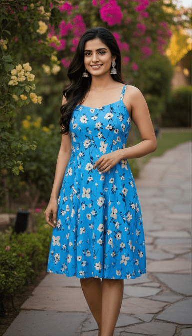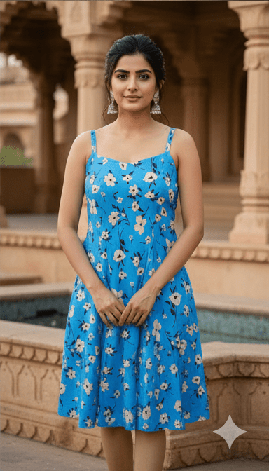Experience timeless elegance with M&TElegant Blue Floral Printed Short Dress for Women. Crafted with fine attention to detail, this dress offers unmatched comfort and chic style. Designed for the modern woman, itideal for both casual and festive outings. Pair it with elegant accessories and step out in confidence.