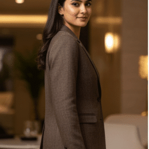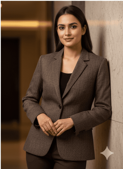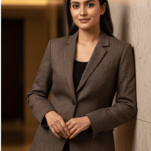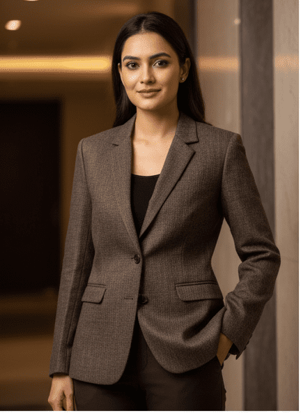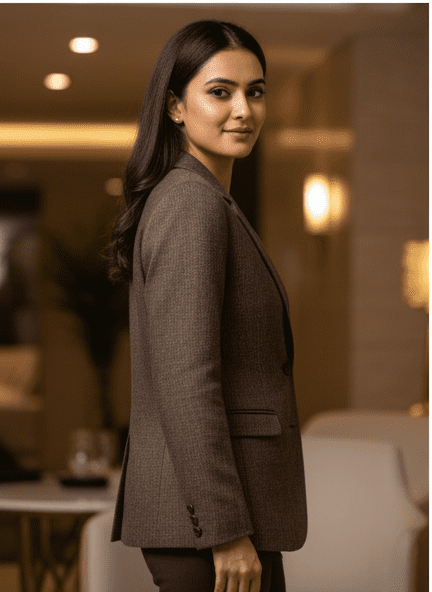 Experience timeless elegance with M&TElegant Brown Casual Blazer for Women. Crafted with fine attention to detail, this outfit offers unmatched comfort and chic style. Designed for the modern woman, itideal for both casual and festive outings. Pair it with elegant accessories and step out in confidence.