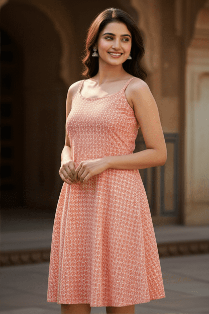 Elegant Coral Printed Short Dress for Women