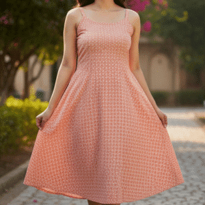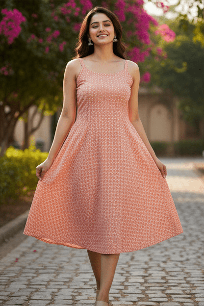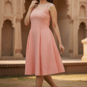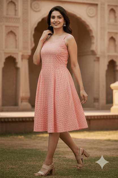 Be the first to review “Elegant Coral Printed Short Dress for Women”