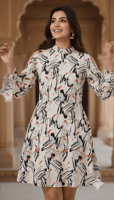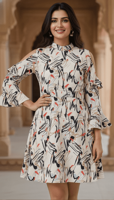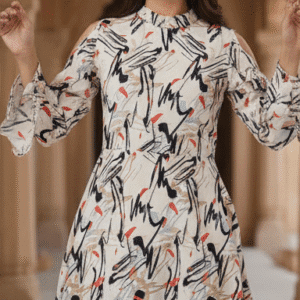 Be the first to review “Elegant Cream Printed Short Dress for Women”