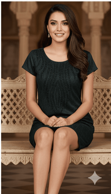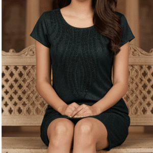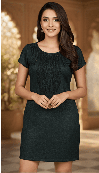 Experience timeless elegance with M&TElegant Dar Green Party Wear Short Dress for Women. Crafted with fine attention to detail, this dress offers unmatched comfort and chic style. Designed for the modern woman, itideal for both casual and festive outings. Pair it with elegant accessories and step out in confidence.
