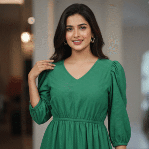 Experience timeless elegance with M&TElegant Green Plain Short Dress for Women. Crafted with fine attention to detail, this dress offers unmatched comfort and chic style. Designed for the modern woman, itideal for both casual and festive outings. Pair it with elegant accessories and step out in confidence.