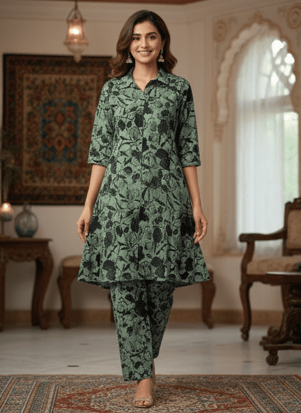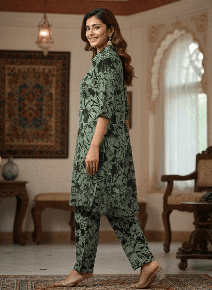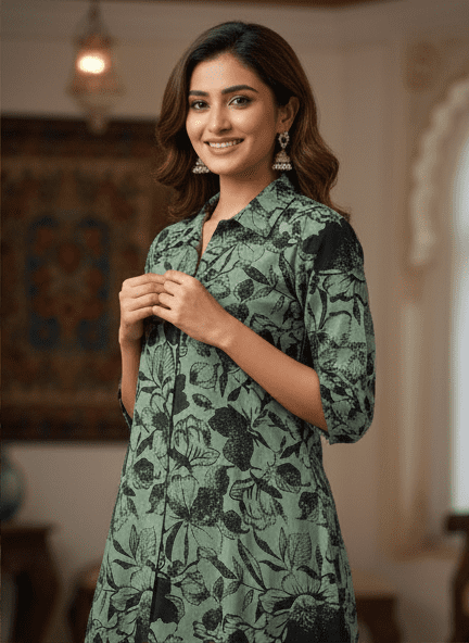 Experience timeless elegance with M&TElegant Green Printed Long Kurti Set for Women. Crafted with fine attention to detail, this kurta offers unmatched comfort and chic style. Designed for the modern woman, itideal for both casual and festive outings. Pair it with elegant accessories and step out in confidence.