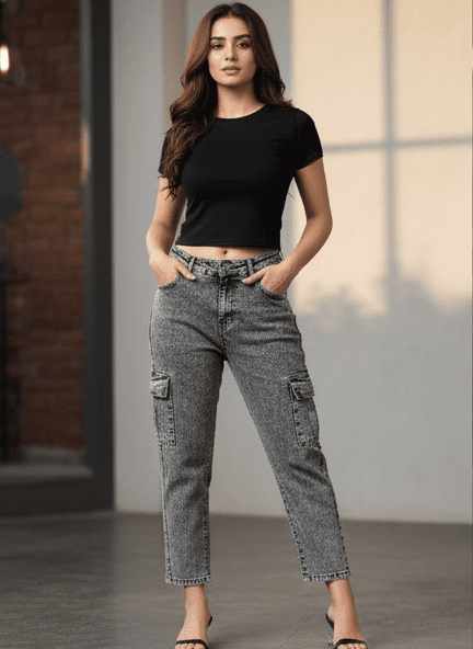 Experience timeless elegance with M&TElegant Light Grey Striaight Fit Cargo for Women. Crafted with fine attention to detail, this outfit offers unmatched comfort and chic style. Designed for the modern woman, itideal for both casual and festive outings. Pair it with elegant accessories and step out in confidence.