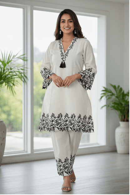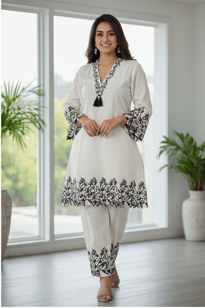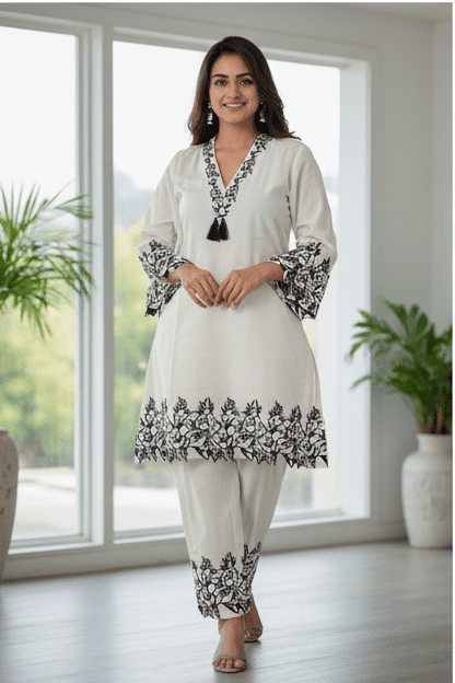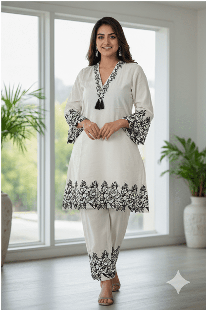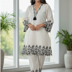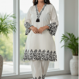 Experience timeless elegance with M&TElegant Off White Embroidery Half Sleeves Cord – Set for Women. Crafted with fine attention to detail, this set offers unmatched comfort and chic style. Designed for the modern woman, itideal for both casual and festive outings. Pair it with elegant accessories and step out in confidence.