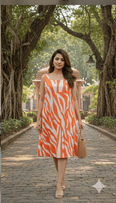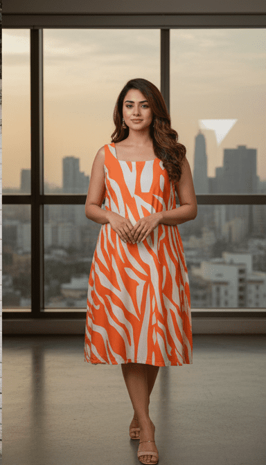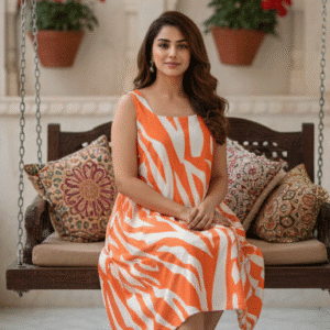 Be the first to review “Elegant Orange Printed Short Dress for Women”