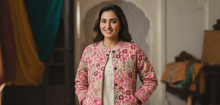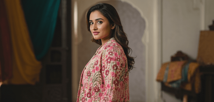 Experience timeless elegance with M&TElegant Peach Full Sleeves Printed Jacket for Women. Crafted with fine attention to detail, this outfit offers unmatched comfort and chic style. Designed for the modern woman, itideal for both casual and festive outings. Pair it with elegant accessories and step out in confidence.