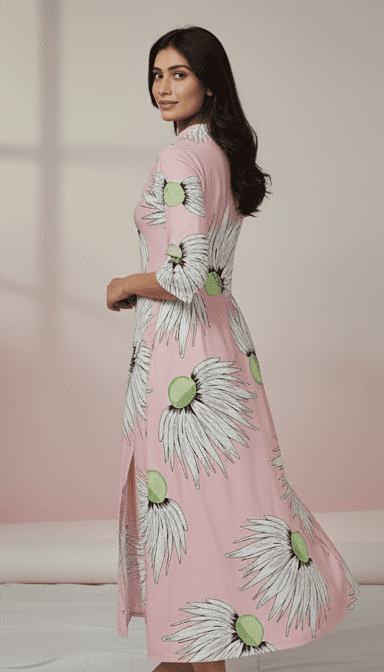 Be the first to review “Elegant Pink Printed Long Dress for Women”