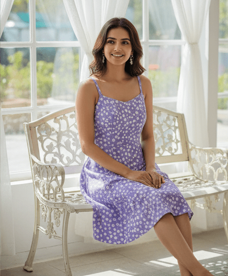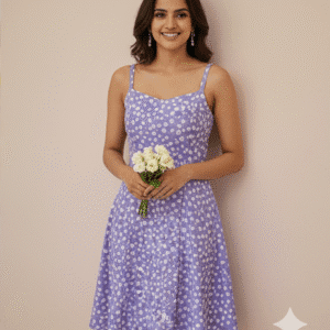 Be the first to review “Elegant Purple Printed Short Dress for Women”