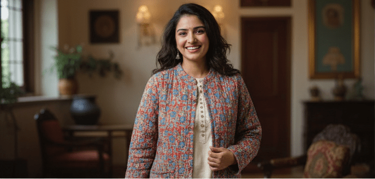 Experience timeless elegance with M&TElegant Red Full Sleeves Printed Jacket for Women. Crafted with fine attention to detail, this outfit offers unmatched comfort and chic style. Designed for the modern woman, itideal for both casual and festive outings. Pair it with elegant accessories and step out in confidence.