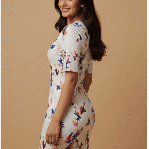 Be the first to review “Elegant White Printed Short Dress for Women”