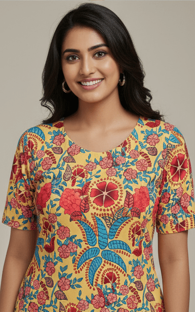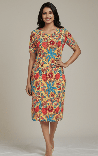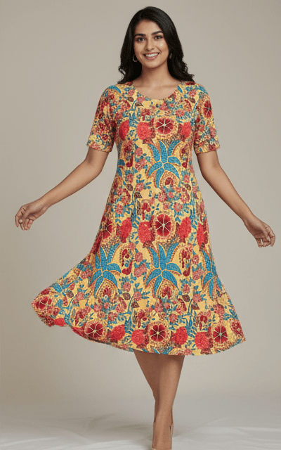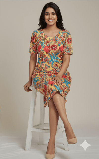 Experience timeless elegance with M&TElegant Yellow Floral Printed Short Dress for Women. Crafted with fine attention to detail, this dress offers unmatched comfort and chic style. Designed for the modern woman, itideal for both casual and festive outings. Pair it with elegant accessories and step out in confidence.