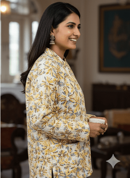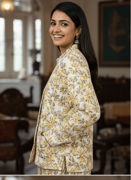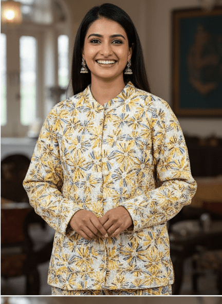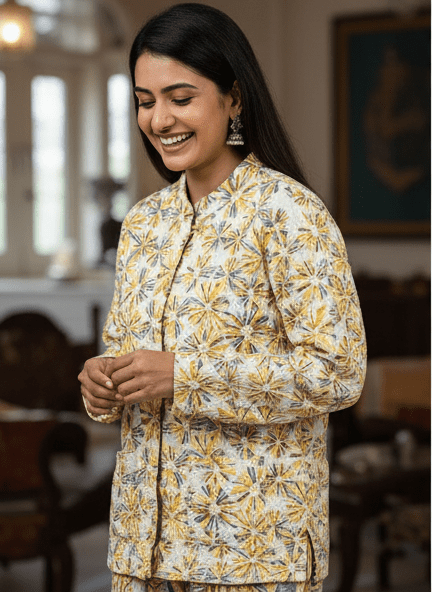 Experience timeless elegance with M&TElegant Yellow Full Sleeves Jacket for Women. Crafted with fine attention to detail, this outfit offers unmatched comfort and chic style. Designed for the modern woman, itideal for both casual and festive outings. Pair it with elegant accessories and step out in confidence.