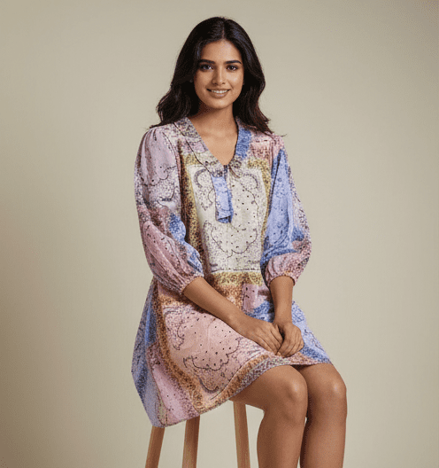 Experience timeless elegance with M&TElegant Yellowish Printed Short Dress Dress for Women. Crafted with fine attention to detail, this dress offers unmatched comfort and chic style. Designed for the modern woman, itideal for both casual and festive outings. Pair it with elegant accessories and step out in confidence.