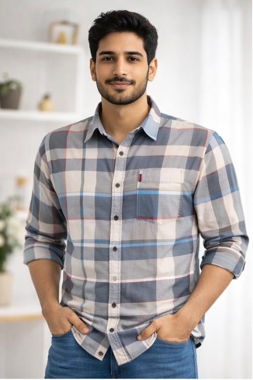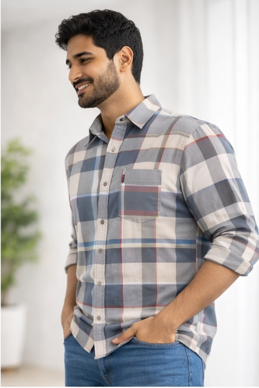 Perfect for workdays, meetings, or relaxed outings, this men’s grey checkered cotton shirt is a must-have piece for the modern wardrobe.