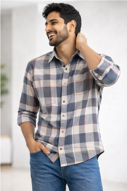 The elegant grey checkered design provides a sophisticated appearance that works well for both formal and casual settings. Featuring a regular fit and full sleeves, it pairs effortlessly with jeans, chinos, or formal trousers.