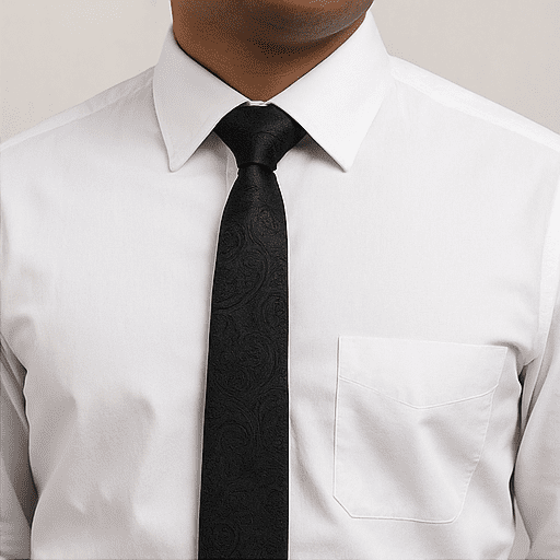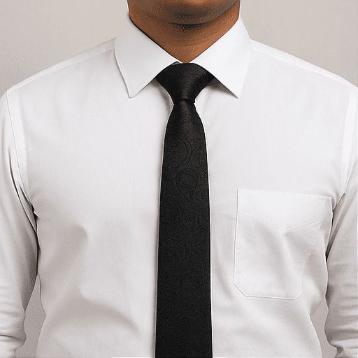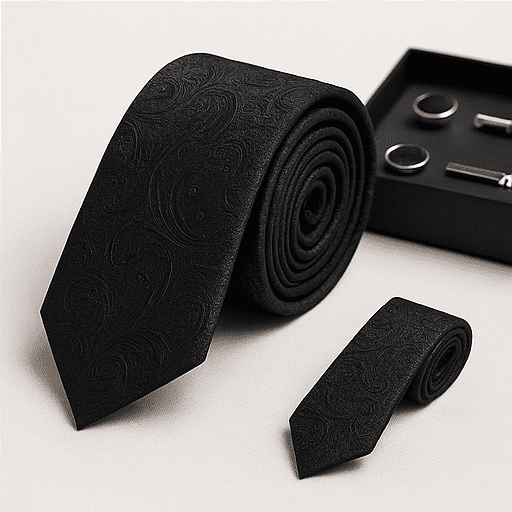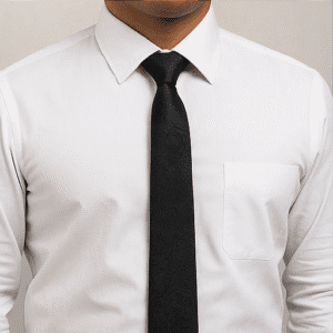 Black Solid Formal Tie for Office & Events.Color: BlackDesigned to give a refined, professional appearance suitable for business and formal events.Finished with precise stitching and balanced weight for an elegant drape.Price: 270 (MRP 120).Care instructions: Dry clean or gentle hand wash; avoid strong detergents.