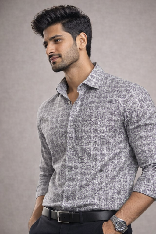 Enhance your formal wardrobe with this elegant brown printed shirt for men. Designed with a smart tailored fit and subtle pattern, it is perfect for office wear, meetings, and formal occasions.