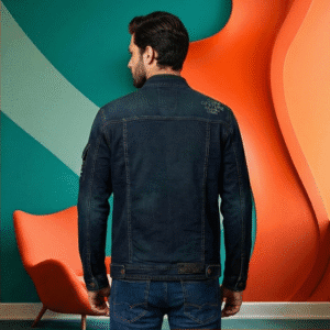 Be the first to review “Men’s Dark Blue Indigo Denim Biker Jacket with Stand Collar & Utility Sleeve Pocket”