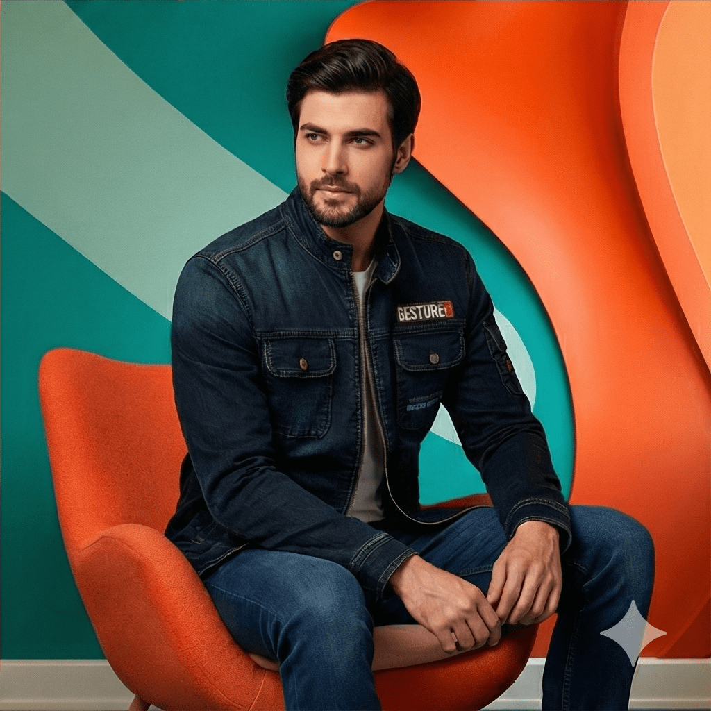 The jacket makes a bold statement with “GESTURE” branding in a contrast orange box on the chest, along with industrial-style text printed below the pocket and on the right back shoulder. It is the perfect layering piece for a casual day out or a weekend ride.