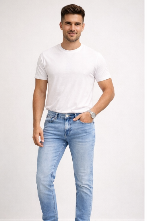 Refresh your everyday style with these men’s narrow fit ice blue jeans, designed for a sharp, modern silhouette. Made from high-quality stretch denim, these jeans provide a close, streamlined fit while ensuring comfort and flexibility throughout the day. The ice blue wash adds a fresh, contemporary touch, making them perfect for casual wear, weekend outings, or smart-casual looks. Easy to pair with t-shirts, polos, or shirts, these jeans are a versatile wardrobe essential.