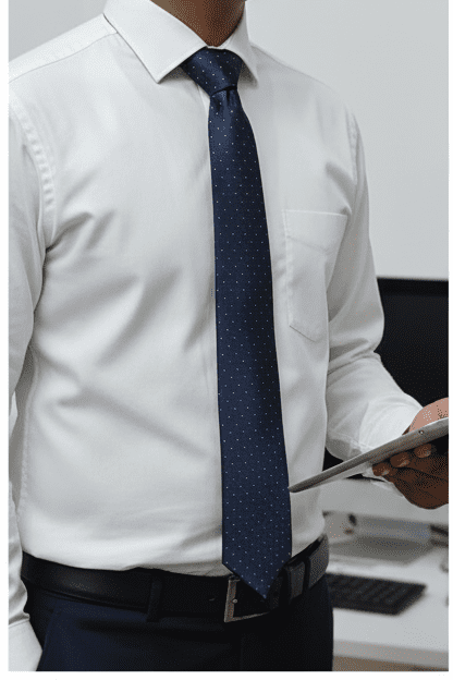 Navy Blue Solid Formal Tie for Office & Events.Color: Navy BlueDesigned to give a refined, professional appearance suitable for business and formal events.Finished with precise stitching and balanced weight for an elegant drape.Price: 899 (MRP 899).Care instructions: Dry clean or gentle hand wash; avoid strong detergents.